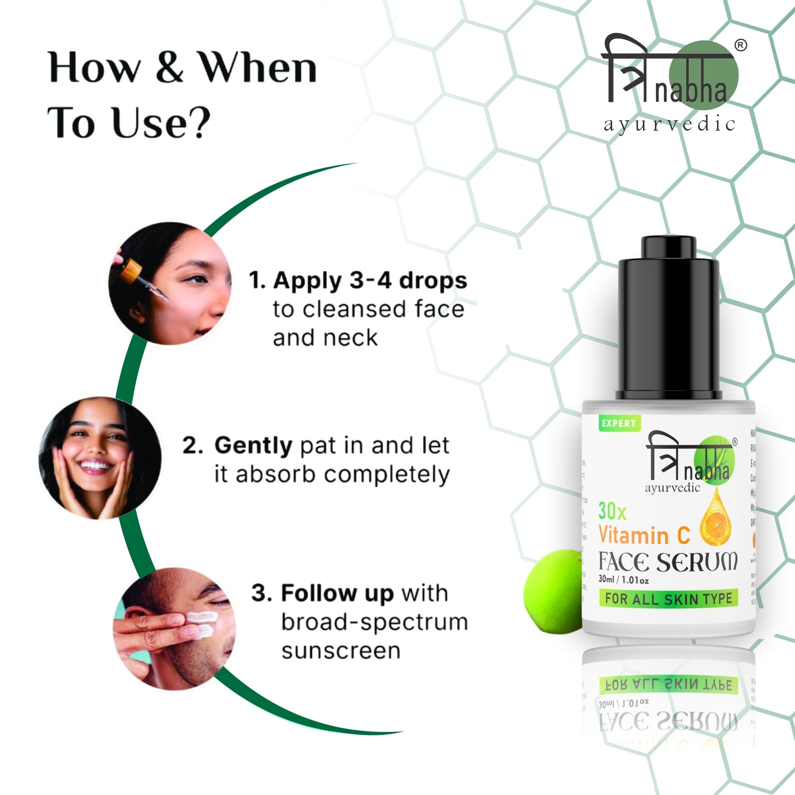 Trinabha Ayurvedic Vitamin C Serum | Natural Brightening & Anti-Aging Face Serum for Glowing Skin-30ML.