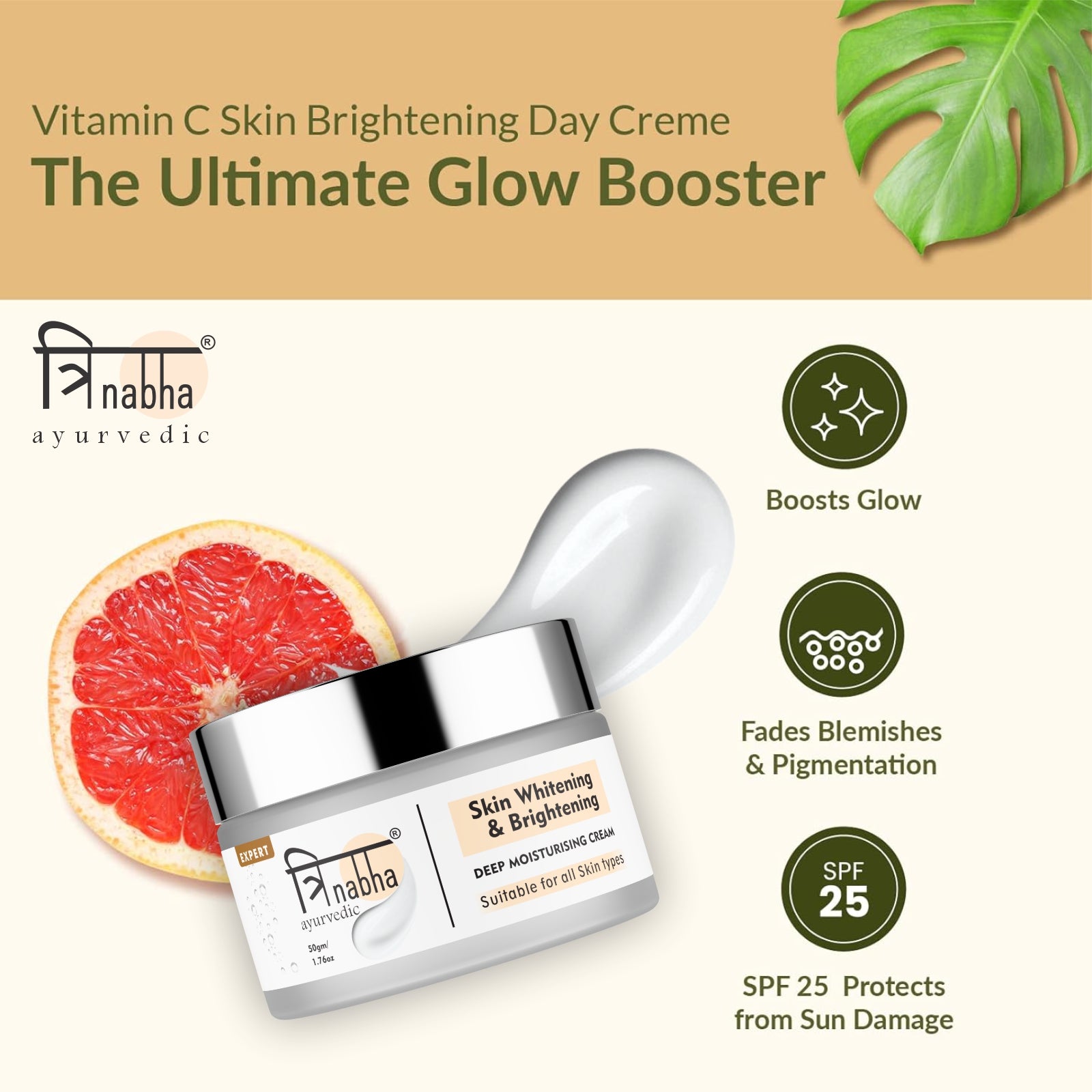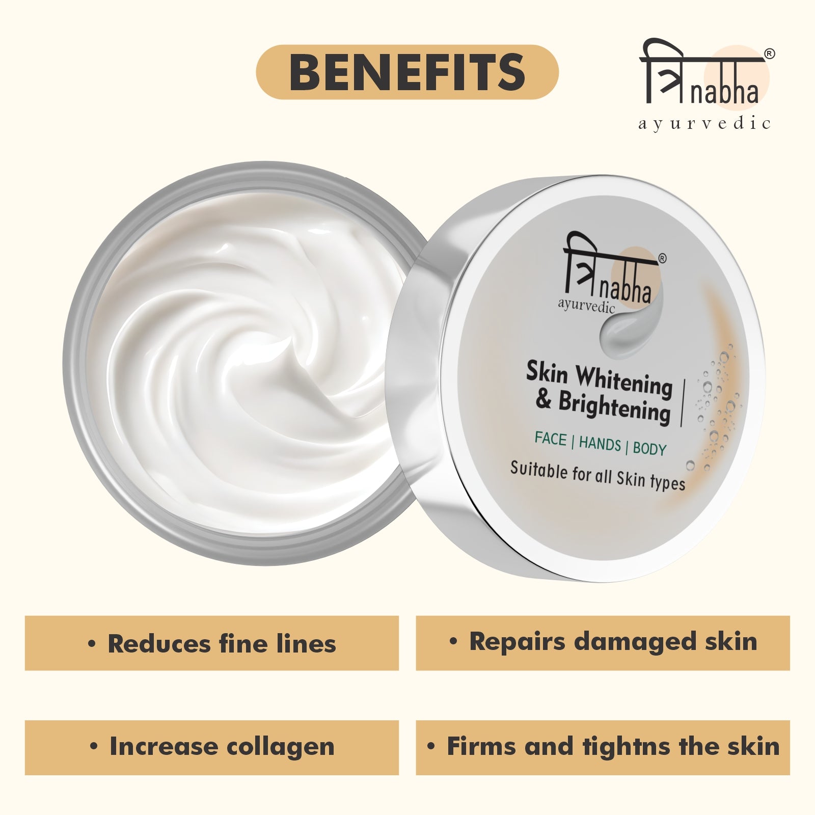 Trinabha Ayurvedic Whitening Cream β Natural Brightening & Even-Tone Herbal Face cream -50GM.
